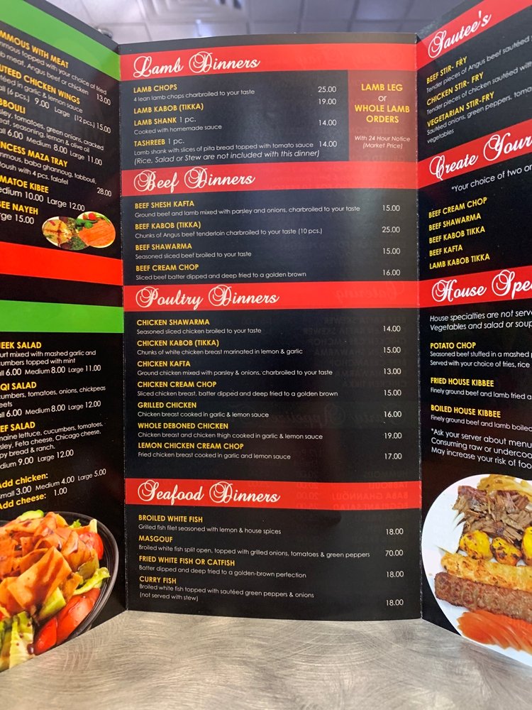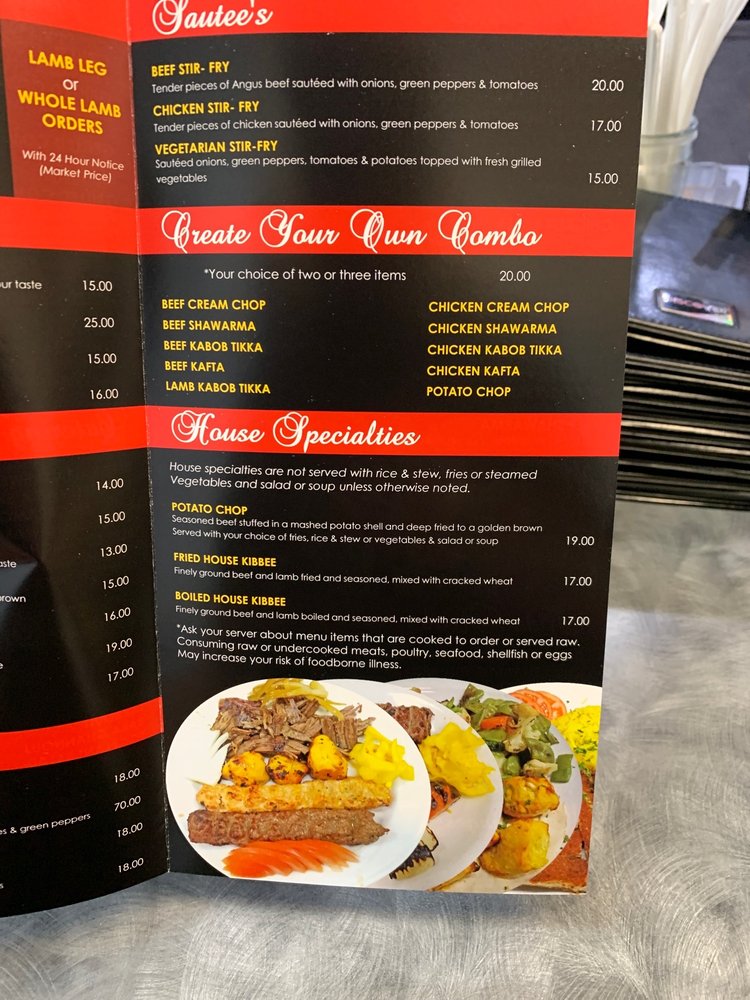 (feeds up to 25 pers.) 10 beef kafta, 10 chicken kafta, 4 chicken kabob, double: chicken cream chop. Beef cream chop, chicken shawarma, beef shawarma & whole rotisserie chicken
